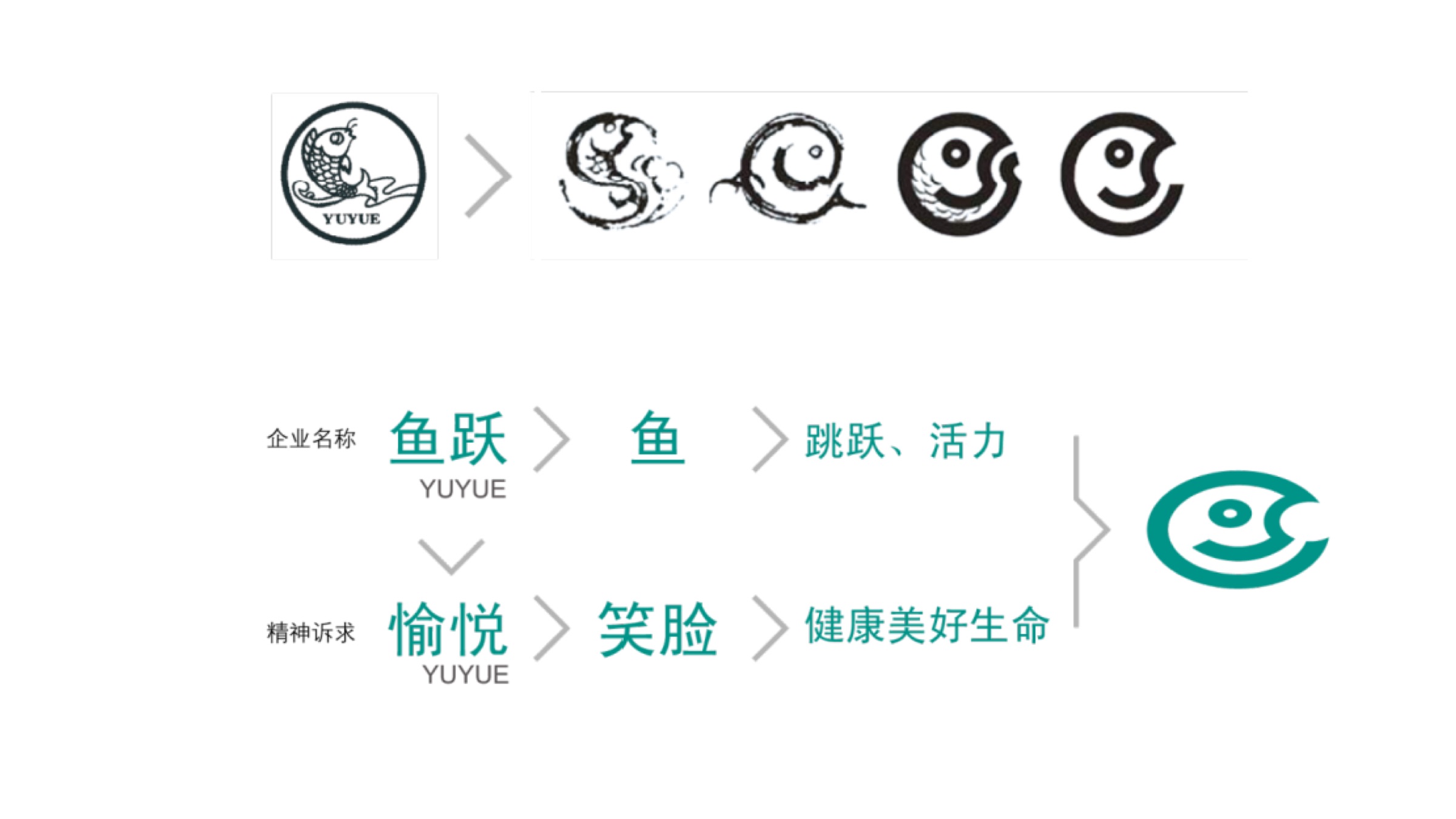 鱼跃原Logo来源于“鱼跃龙门”,在推广应用中存在识别性不强、图形繁复难以制作、难以被国际客户理解和记忆等问题,整体形象缺乏高度和力度,不利于企业更高更远的发展。我们从品牌名字中寻找创意来源,并挖掘其内核深层次的含义,赋予品牌新生命力。“鱼”代表着跳跃、活力,鱼跃与“愉悦”同音,代表着品牌传递给用户的健康美好生命。