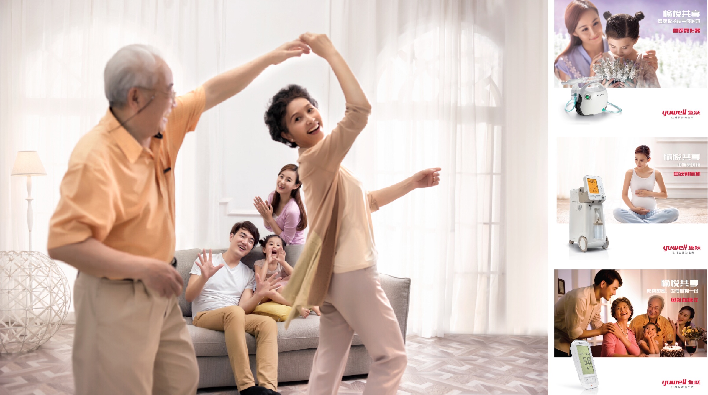 唐浩品牌深入挖掘符合其家庭健康管理定位的“愉悦”精神诉求,对原Logo图案进行抽象化设计,以简洁流畅、极具特色的笑脸符号形成品牌标志,有效解决品牌因Logo带来的困扰和阻碍,同时也寓意鱼跃追求健康美好生活的品牌愿景。2008年,为配合鱼跃A股上市,唐浩品牌为鱼跃进行系统形象提升,将logo图形的细节做精细调整,并将品牌主色变为中国红,既寓意着鱼跃红火的未来,更以独特品牌形象显著区隔于其他品牌,为中国品牌迈向国际树立标杆。梳理鱼跃产品线,创作具有针对性的主题形象脚本,拍摄出具有表现力的品牌及产品形象,彰显品牌亲和力和产品专业性。配合鱼跃的市场营销推广,创意实现出鱼跃的各种宣传物料和网站、展会视觉设计及导入,帮助鱼跃开拓出更多市场。