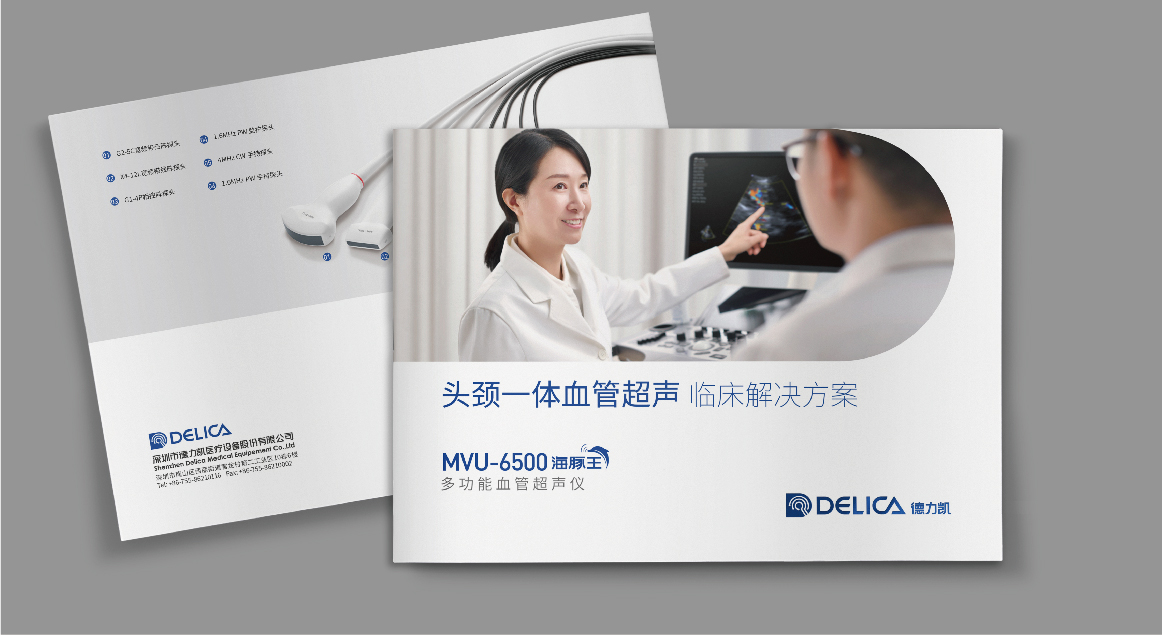 以深沉的蓝色为主色调,体现德力凯的深层技术和先进科技感;辅助图形从标志外轮廓演变而来,更简洁大气,很好地体现了德力凯的医疗专业感。结合专业医疗摄影,提升产品质感与价值,使品牌形象从构建到落地都符合国际化水准。